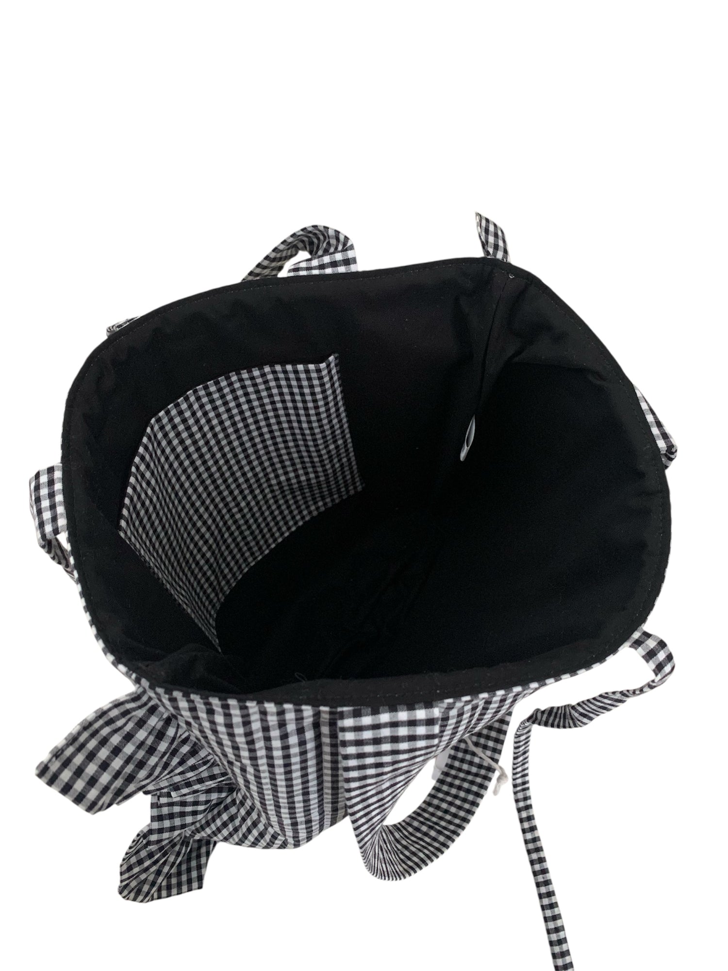 Black Gingham Frill Quilted Cotton Tote Bag