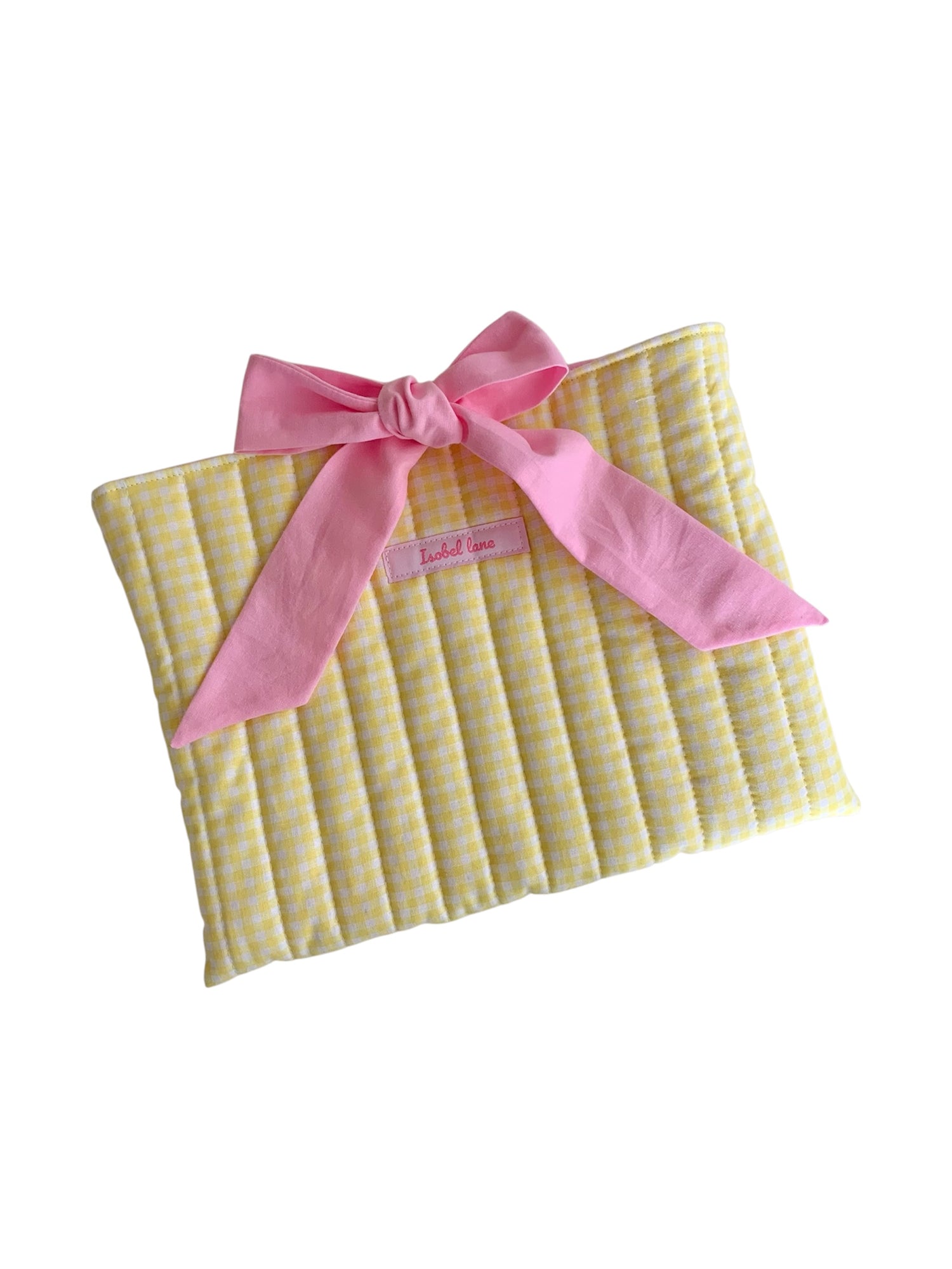 Yellow Gingham Cotton Quilted Book Sleeve
